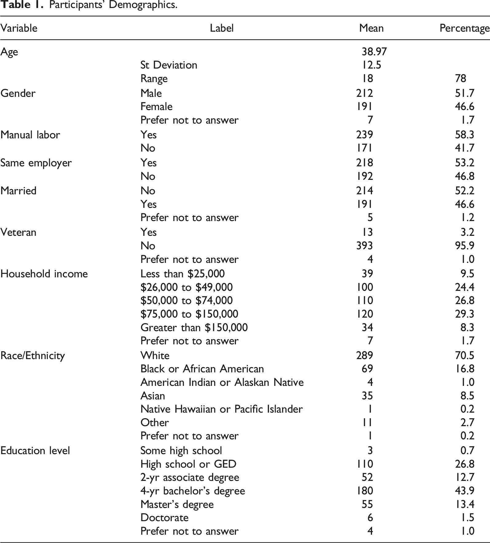 The study was conducted with self-reported participants located throughout the United States. Self-reporting introduces the possibility of response bias and recall bias. This condition is evident in any investigation, not just this one, but it still should be addressed. The participants were presented with questions asking them to consider when they had the workers' compensation claim. The focus was on that period, not their overall employment perspective. This hopefully reduced the bias, and as noted from the analysis section, the scale is significant with each of the tests performed.