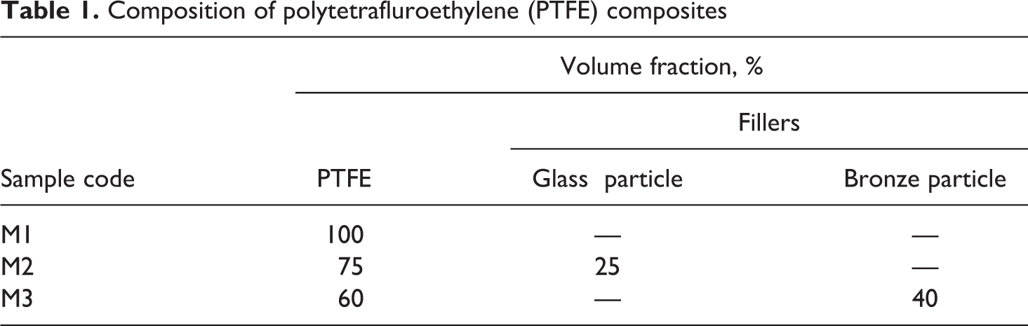 The compression molded pure PTFE and two PTFE-based composite materials were studied in the present work. The compositional details of each material are presented in Table 1. The materials are purchased in the form of rectangular sheets with dimensions 100 mm × 100 mm × 3 mm by Poly fluoro Ltd. (Bangalore, India). The size of the pure PTFE, glass particle and bronze particle used for manufacture is 23.5 µm, 40 µm and 48 µm, respectively.