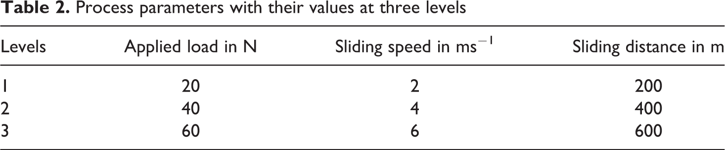 Wear processes in composites are complex phenomena involving a number of operating variables, and it is essential to understand how the wear characteristics of the composites are affected by different operating conditions. Although a large number of researchers have reported on properties, performance and on wear characteristics of composites, neither the optimization of wear processes nor the influence of process parameters on wear rate has adequately been studied yet. Several mathematical models based on statistical regression techniques have been constructed to select the proper testing conditions required for full factorial design increases geometrically, whereas the fractional factorial design is efficient and significantly reduced the time. This method is popular because of its simplicity, but this simplicity has led to unreliable results and inadequate conclusions. The fractional design might not contain the best design point. Moreover, the traditional multifactorial experimental design is the “change-one-factor-at-a-time” method. Under this method only one factor is varied, while all the other factors are kept fixed at a specific set of conditions. To overcome these problems, Taguchi and Konishi 12 recommended the use of orthogonal arrays. This inexpensive and easy to operate experimental strategy based on Taguchi’s parameter design has been adopted to study the effect of various parameters and their interactions in a number of engineering processes.