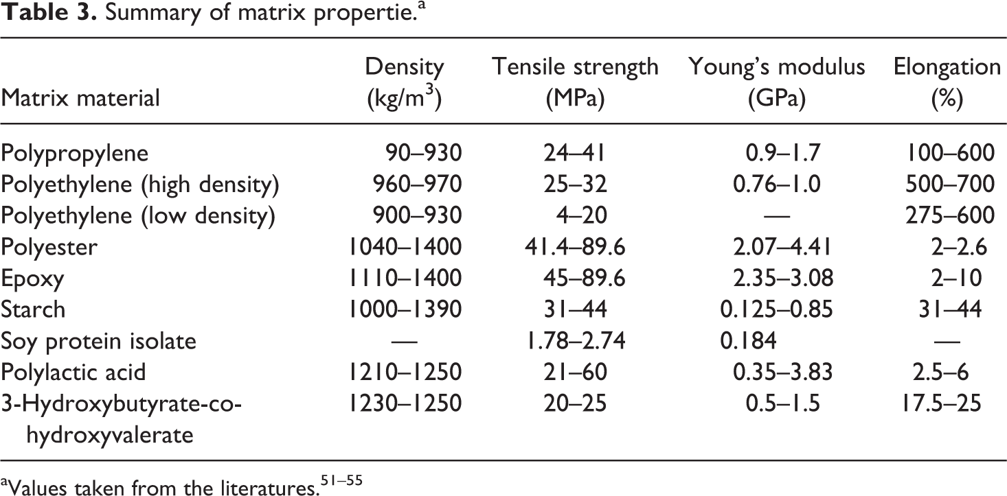 Although bagasse is a natural resource, their matrix materials in their composites are not necessarily biodegradable. Cement and Al-Cu-Mg alloy are the best examples. There is a wide range of matrix materials in bagasse composites. The main matrix materials are listed as follows.