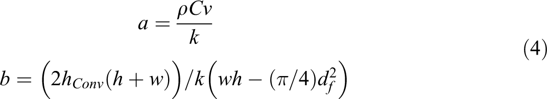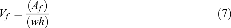 Using the data in Table 1 and the fiber diameter of 0.2 mm, the fiber-volume percentage in Equation 6 and Figure 3 equals 31.5% based on Equation 7. 2