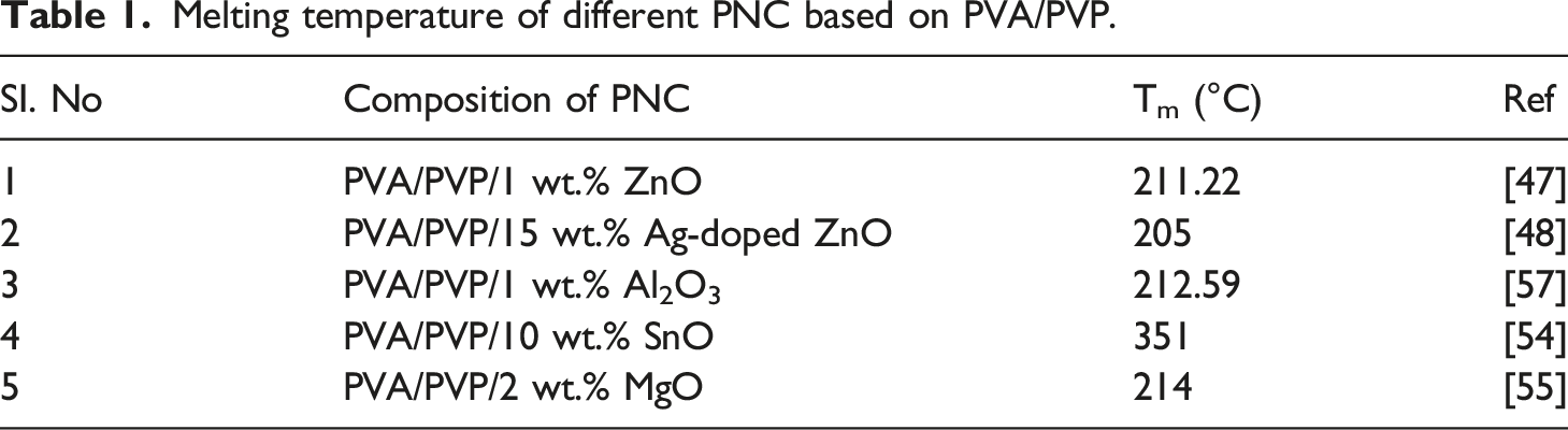 Melting temperature of different PNC based on PVA/PVP.