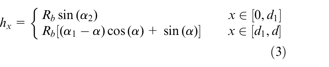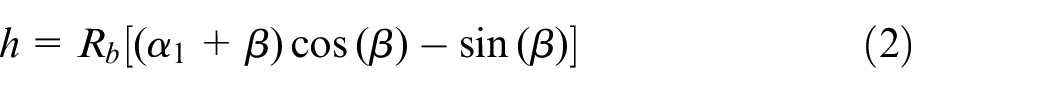 When the root fillet radius is greater than the radius of the base circle, the number of teeth at this time is less than 41. Compared with the previous case, the gear tooth profile as a whole becomes smaller, and the parameters in the stiffness are redefined according to the geometric relationship in Figure 5. The calculation formula for stiffness is as follows.
