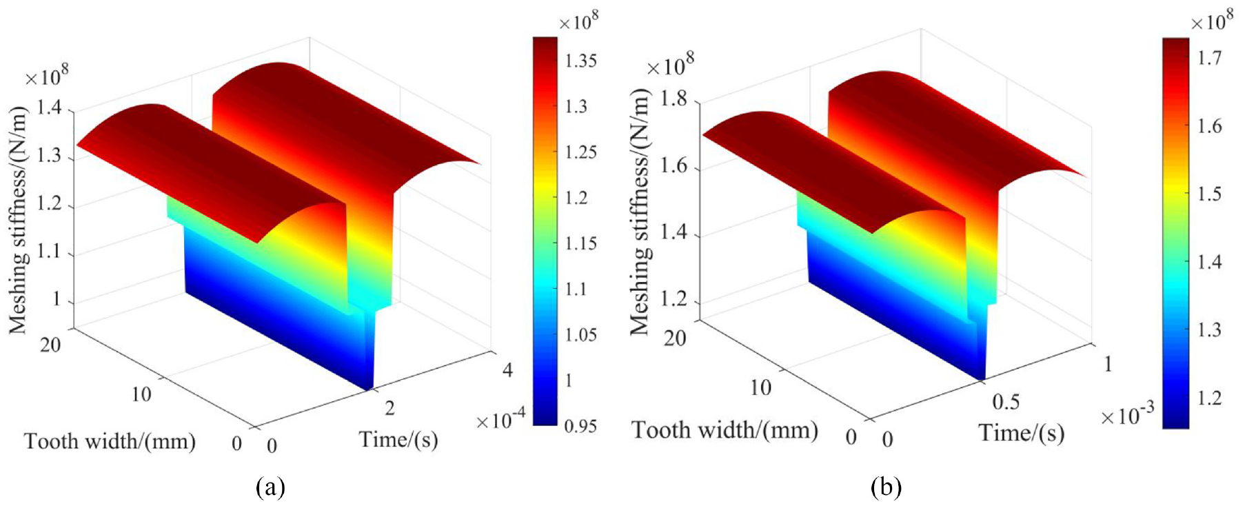 TVMS of gear internal engagement: (a) external mesh and (b) internal mesh.