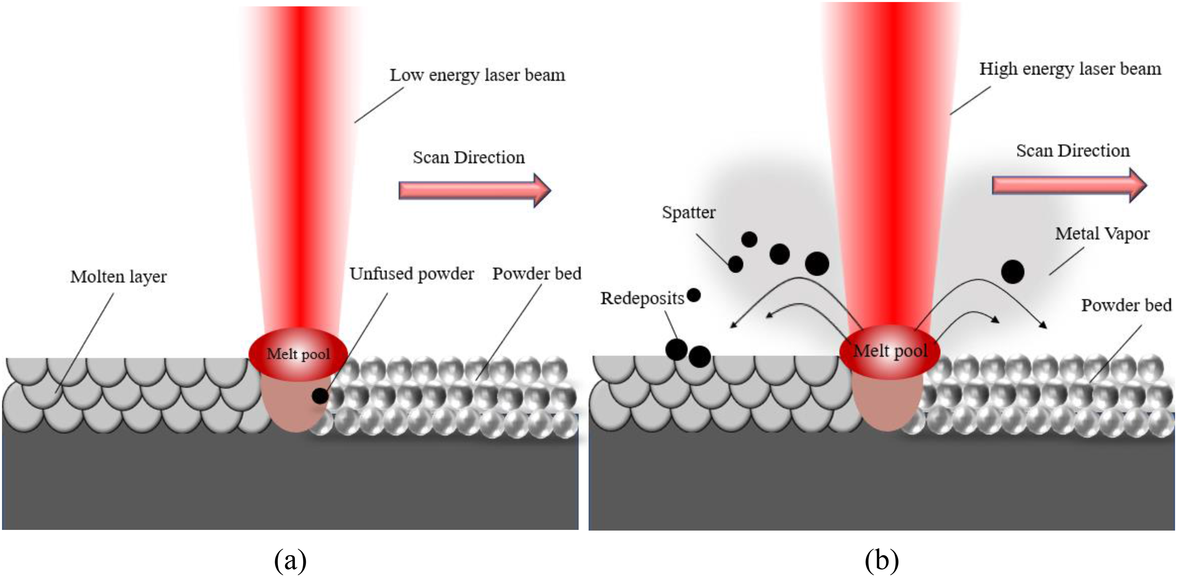 In addition, the lower laser power causes severe spheroidization, resulting in a rough surface of the solidified layer during SLM, accompanied by a large number of pores, reducing the density and quality of parts. Although in the forming process, the higher laser power ensures the formation of sufficient liquid metal melt in the lower molten pool, avoids the splash of droplets, improves the wettability of melt and solidified layer, and alleviates the spheroidization phenomenon. However, high laser energy leads to excessive spheroidization of liquid metal, resulting in large residual stress and parts deformation. Therefore, the selection of appropriate laser power is the key to obtain higher-forming quality samples.
