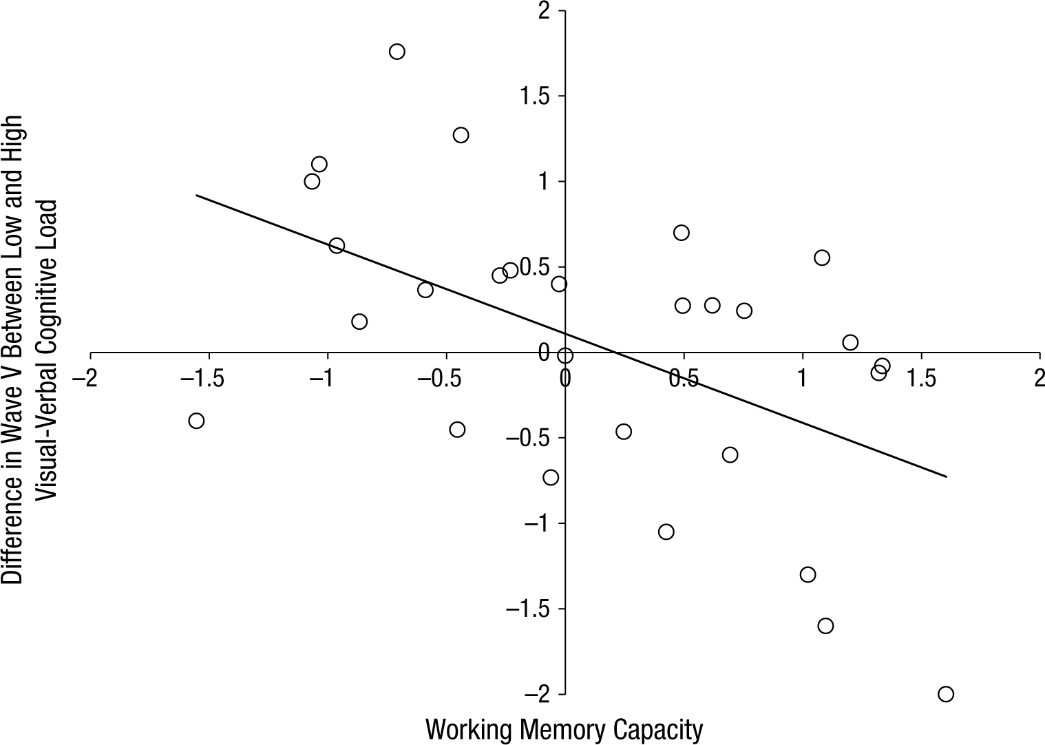 Individual differences in working memory capacity (WMC) are typically measured with complex span tasks (combining recall of word lists with simultaneous distractor activities) and are assumed to reflect differences in people’s ability to stay focused on what is relevant and resist distraction (Engle, 2002). The WMC concept is embedded in our view of concentration as an endogenous factor determining an individual’s capacity for attentional engagement. In support of this view, high-WMC individuals are typically less distracted by unwanted sound (Sörqvist & Rönnberg, 2014), and WMC is related to both shield mechanisms: High-WMC individuals show a more substantial attenuation of background-environment processing when task difficulty is high (Fig. 3; Sörqvist, Stenfelt, & Rönnberg, 2012), and they show a greater resistance to attention capture (Fig. 4; Sörqvist, 2010), possibly by means of active inhibition of task-irrelevant processing (Conway, Cowan, & Bunting, 2001; Marsh, Beaman, Hughes, & Jones, 2012; Marsh, Sörqvist, Hodgetts, Beaman, & Jones, 2015).