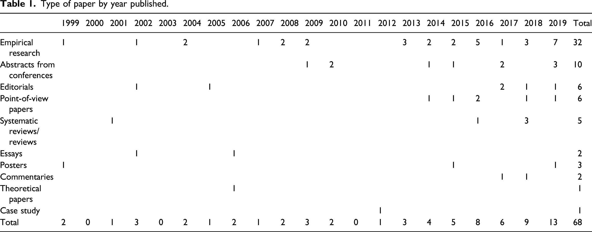 Type of paper by year published.