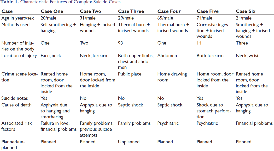 Characteristic Features of Complex Suicide Cases.