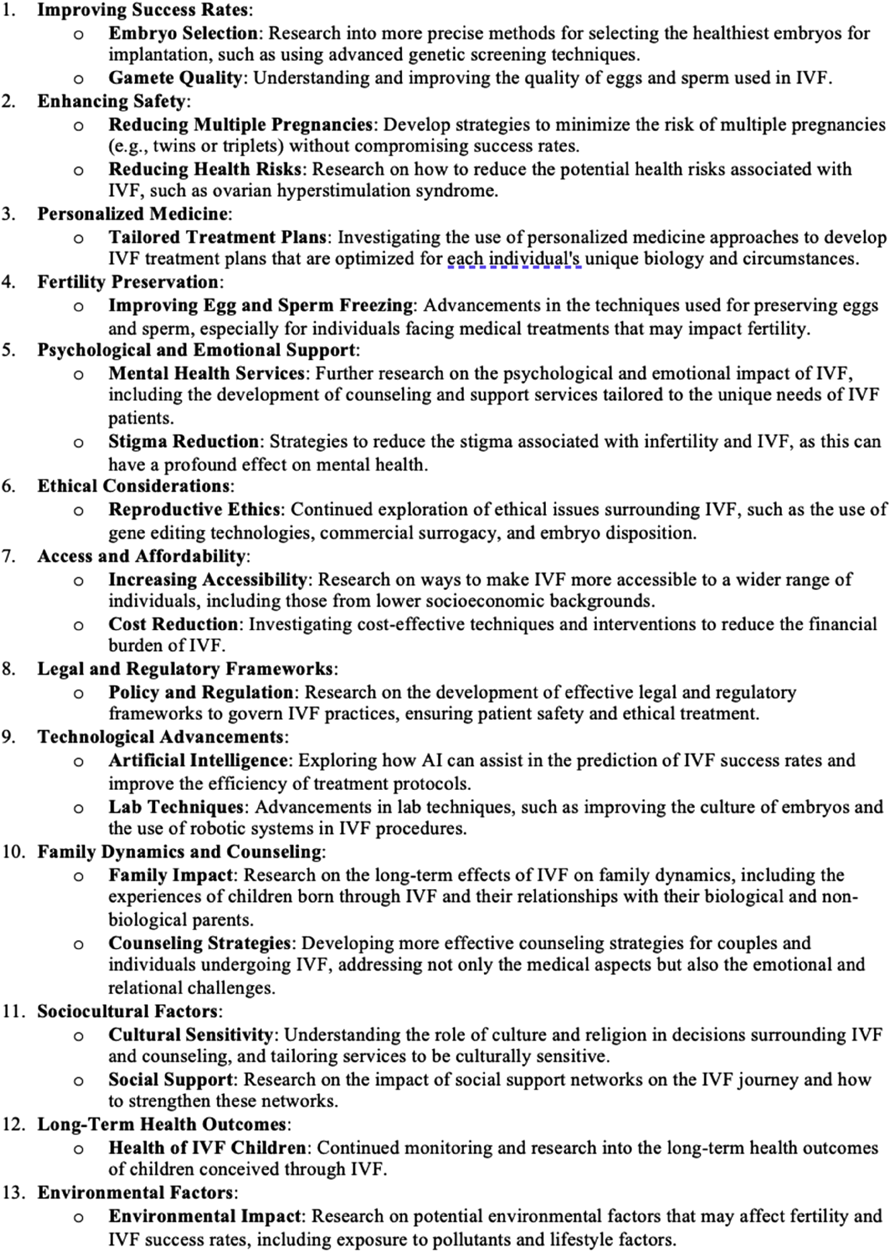 Future IVF research possibilities.