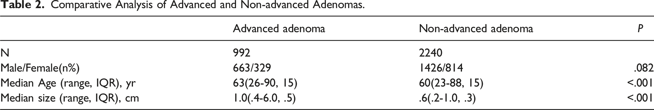 Comparative Analysis of Advanced and Non-advanced Adenomas.