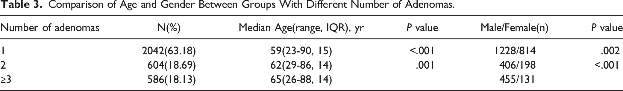 Comparison of Age and Gender Between Groups With Different Number of Adenomas.