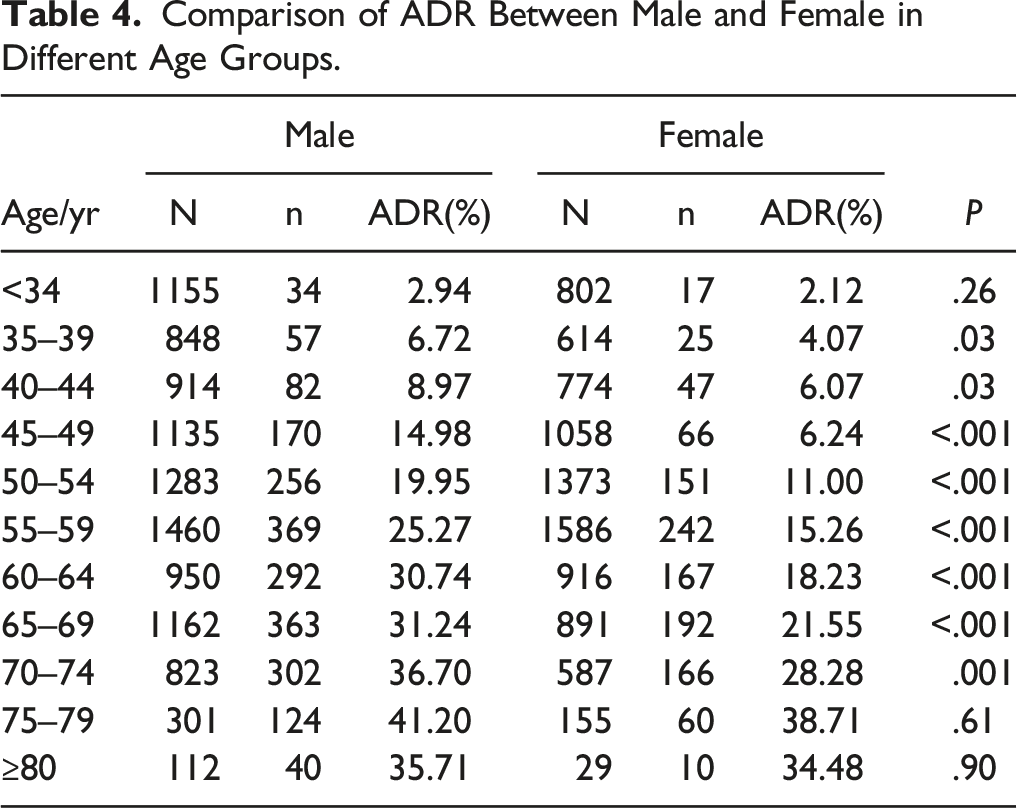 Comparison of ADR Between Male and Female in Different Age Groups.