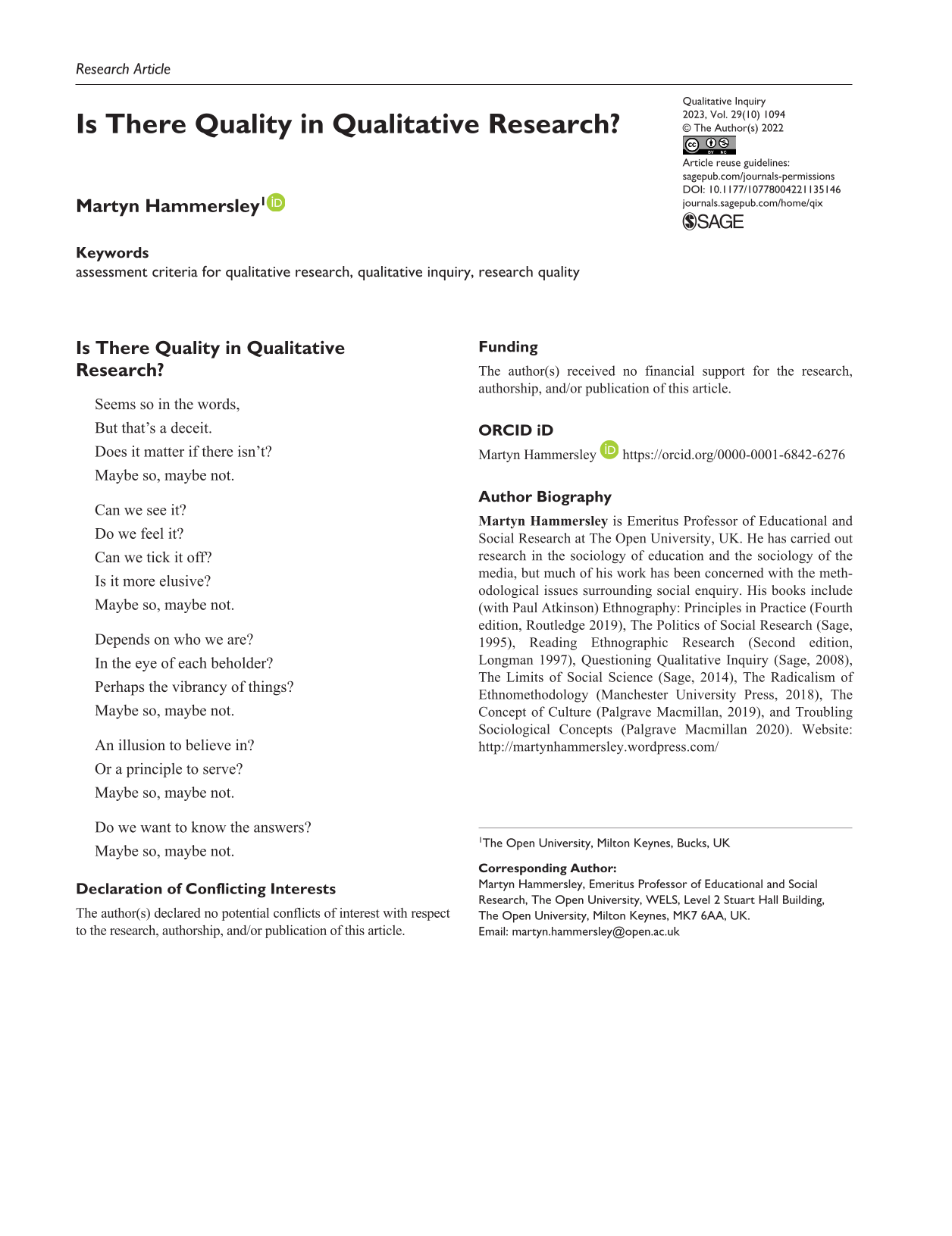 Is There Quality in Qualitative Research?