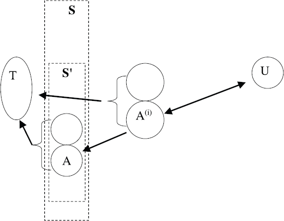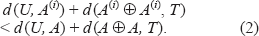 (Note that it is not necessary to try A(1) though it is closer by one step to U than A is, because A(1) ⊕ A(1) is also farther from T by at least one step, since it is not in S.) Our final solution set S″ is the set of A(1), over all genomes A ∊ S', and all trajectories between A and U, that satisfy inequality (2) and that minimize the left hand side of (2).