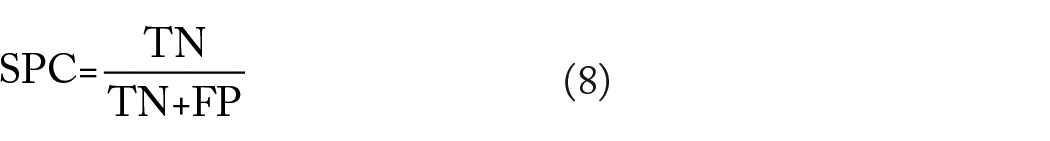 To better evaluate the proposed method, we calculated the following evaluation parameters: precision (PR), prediction accuracy (ACC), sensitivity (SN), specificity (SPC), and Matthew’s correlation coefficient (MCC). Their formation can be seen as follows: