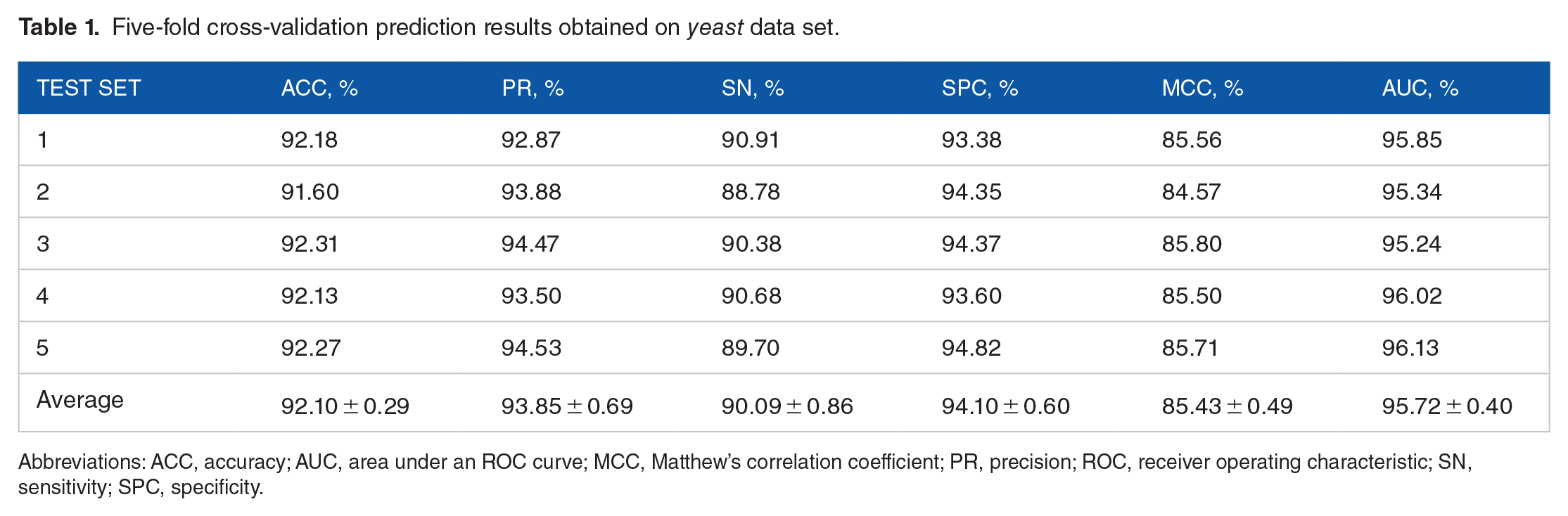Abbreviations: ACC, accuracy; AUC, area under a ROC curve; MCC, Matthew’s correlation coefficient; PR, precision; ROC, receiver operating characteristic; SN, sensitivity; SPC, specificity.