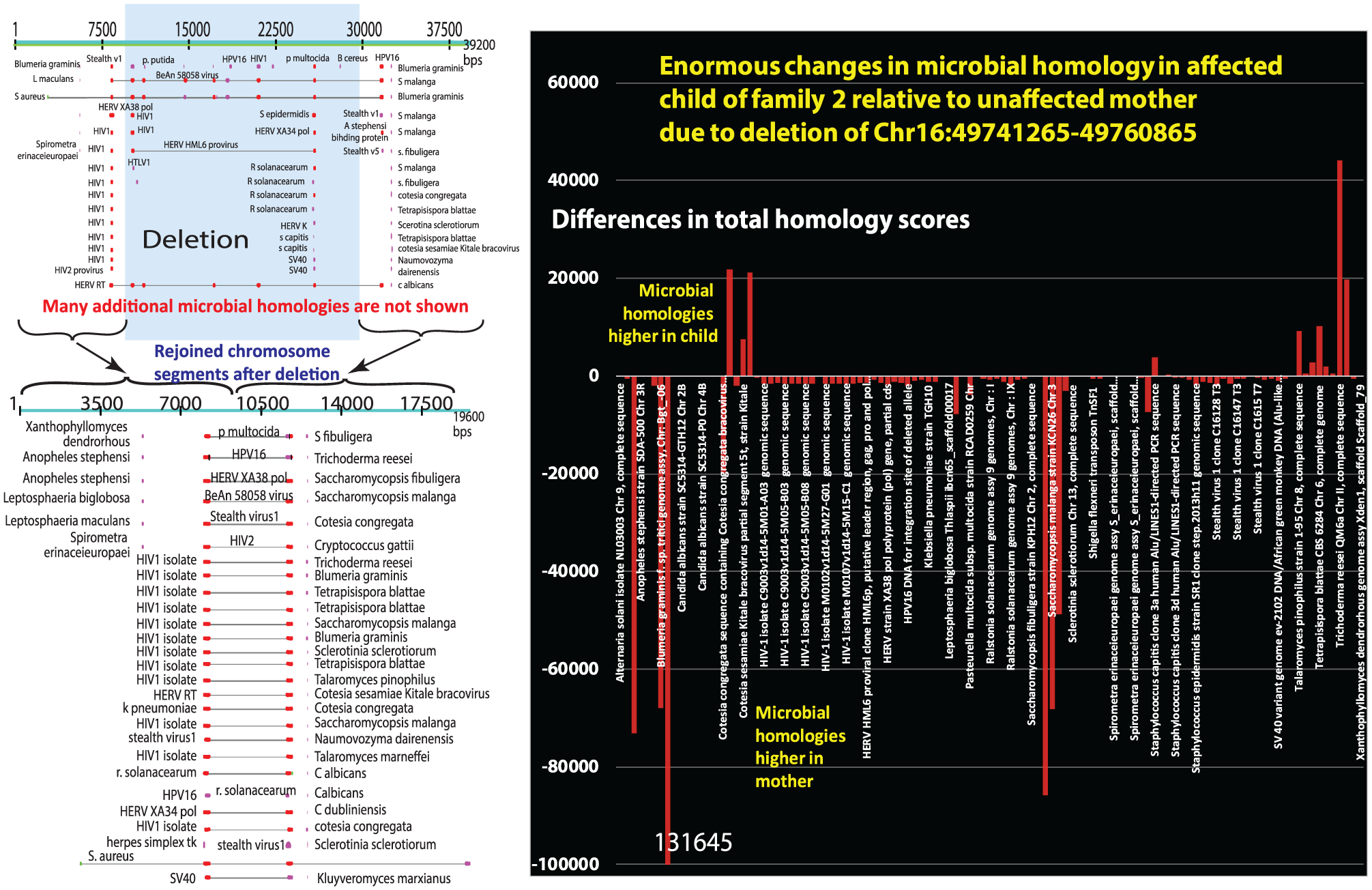 A structural variant unique to an affected member of family 2 in Aristidou et al 3 has massive changes in the distribution and identities of homologous microorganisms when compared with the unaffected mother.