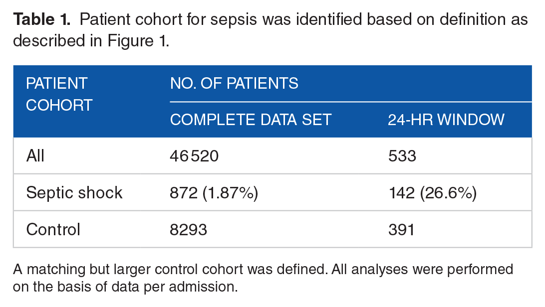 Patient cohort for sepsis was identified based on definition as described in Figure 1.