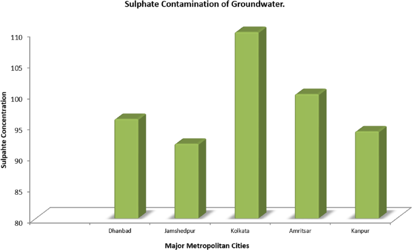 Levels of sulphate contamination in certain major metropolitan cities in India.