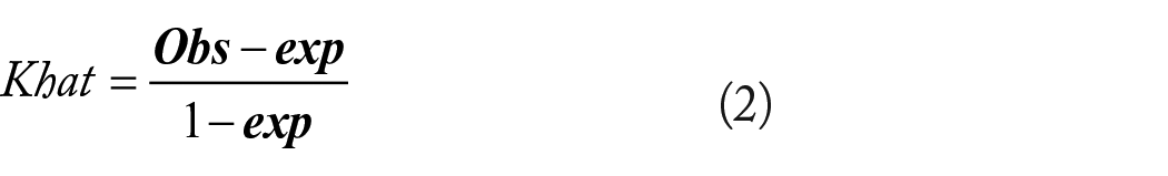 where: Obs is observed correct or overall accuracy and Exp is represents correct classification.