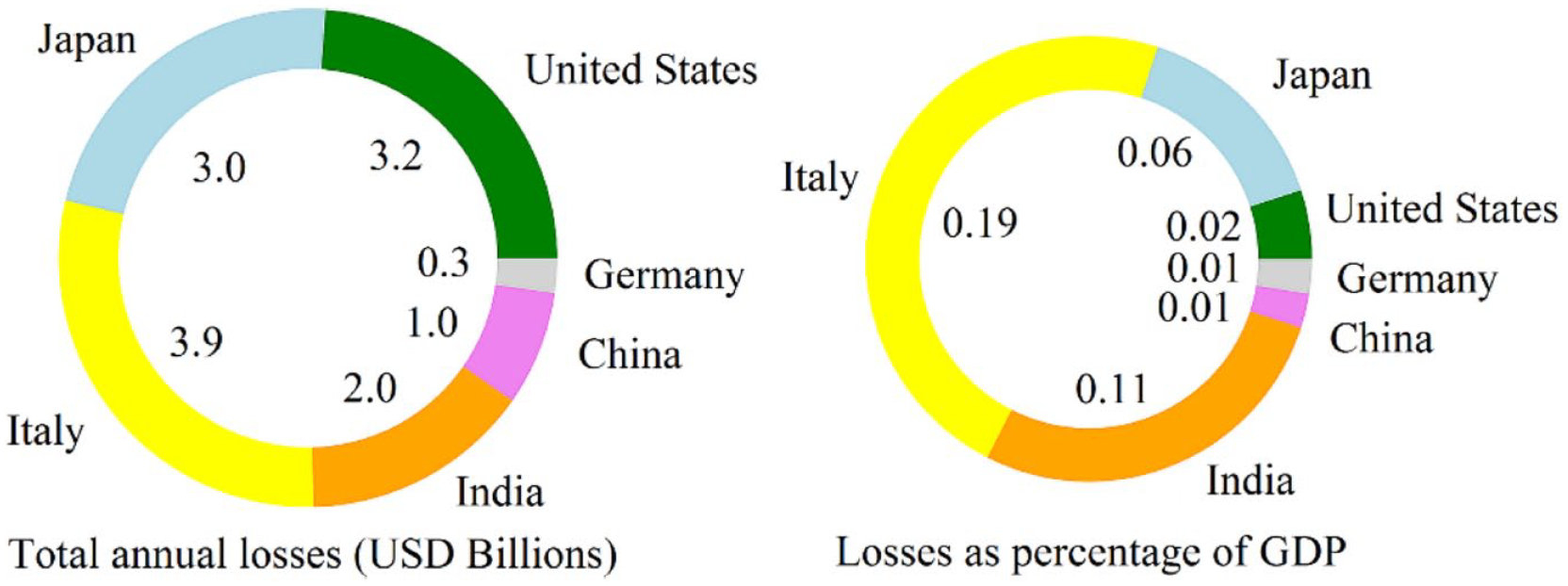Landslides cause loss of human life every year. Laccase and Nadim (2009) report that at least 17% of all natural hazard deaths worldwide are caused by landslides. Human losses derived by landslides occur predominantly in developing countries. In contrast, developed countries such as the United States and Japan report few human losses, but high annual economic losses, estimated between 1 and 6 billion dollars (Ospina-Gutiérrez & Aristizábal-Giraldo, 2021). It is estimated that the direct and indirect costs of mass movements can be significant in terms of gross domestic product (GDP), even in developed countries (Figure 1).