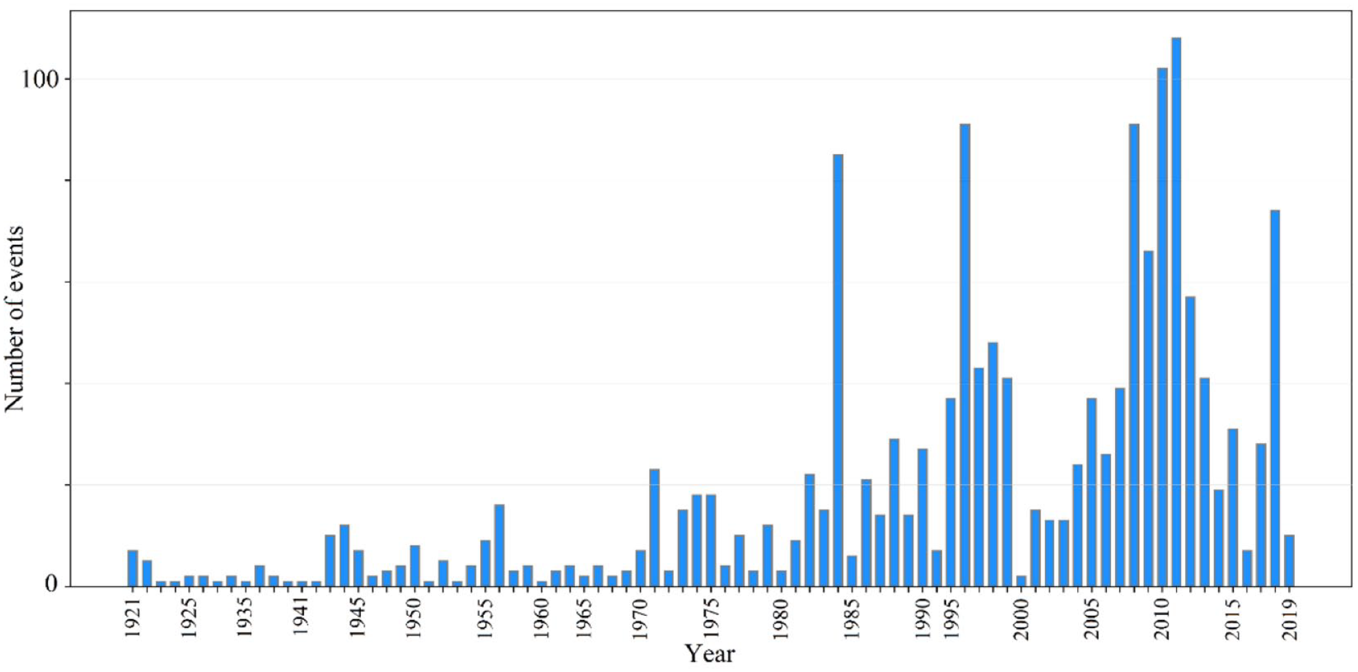 According to data from the Information System of Mass Movements (SIMMA, in Spanish) of the Colombian Geological Service (SGC, in Spanish), in the period between 1900 and 2018 at least 30,730 landslides have occurred in Colombia, which have left a balance of 31,198 fatalities and economic losses of USD$ 654 million (Ospina-Gutiérrez & Aristizábal-Giraldo, 2021). According to the DESINVENTAR database, 10,438 landslides have been recorded in Colombia between 1921 and 2020, leaving almost 7,313 dead and disastrous results for the country's economic system.