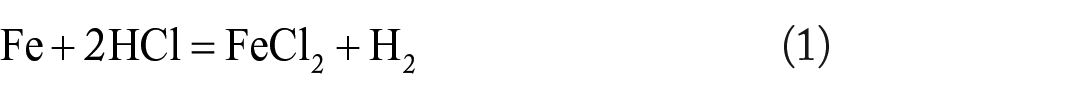A total five (05) g of iron powder was dissolved in 150 mL of 2 M HCl solutions to make 150 mL of FeCl2. The chemical reaction is shown in equation (1).