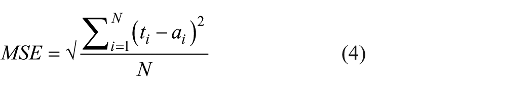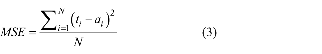 Feedforward backpropagation algorithm was used in this study for data classification. The target data was compared with the output data using the mean squared error (MSE) (Equation 3), root mean squared error (RMSE) (Equation 4), Chi-square (χ²) (Equation 5), and coefficient of determination (R²) (Equation 6) (Belcaid et al., 2024). By propagating the MSE back from the output layer to the input layer, the values of the weights and biases are adjusted until the maximum number of iterations is reached.