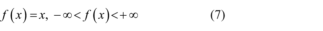 The network was trained using Levenberg–Marquartd method (trainlm) method. The “purlin” (Equation 7) transfer function was selected for output layer, which is mainly used for function fitting. The “tansig” (Equation 8) transfer function was selected for hidden layer, which is mainly used for pattern recognition. Applying the “tansig” function means that the neuron’s net input can have any value between positive and negative infinity and the output is limited between −1 and +1.