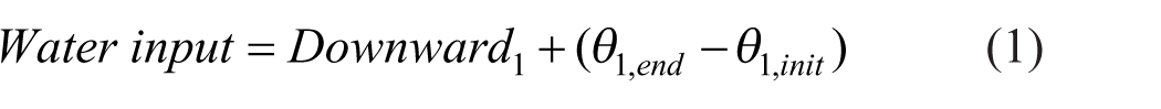 From equation (1), the total amount of water is conserved, which indicates that the water input into the soil on the left side of the equation and the right side of the equation represents the water transferred from layer 1 to layer 2 (