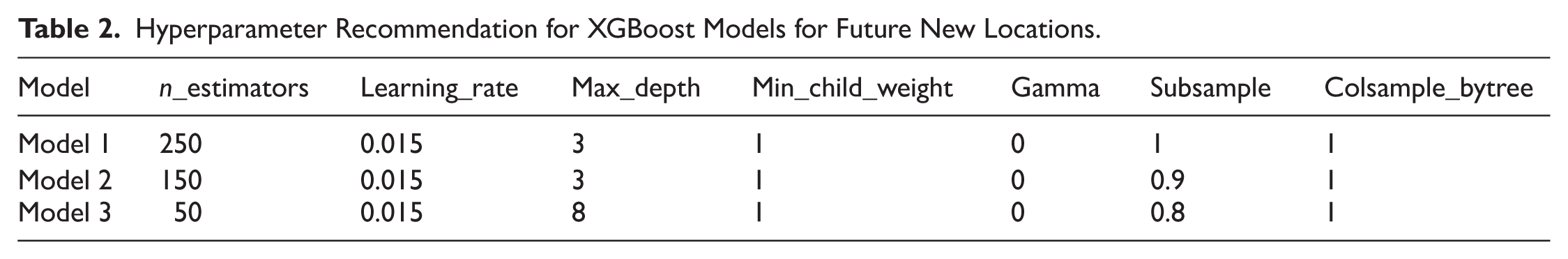Hyperparameter Recommendation for XGBoost Models for Future New Locations.
