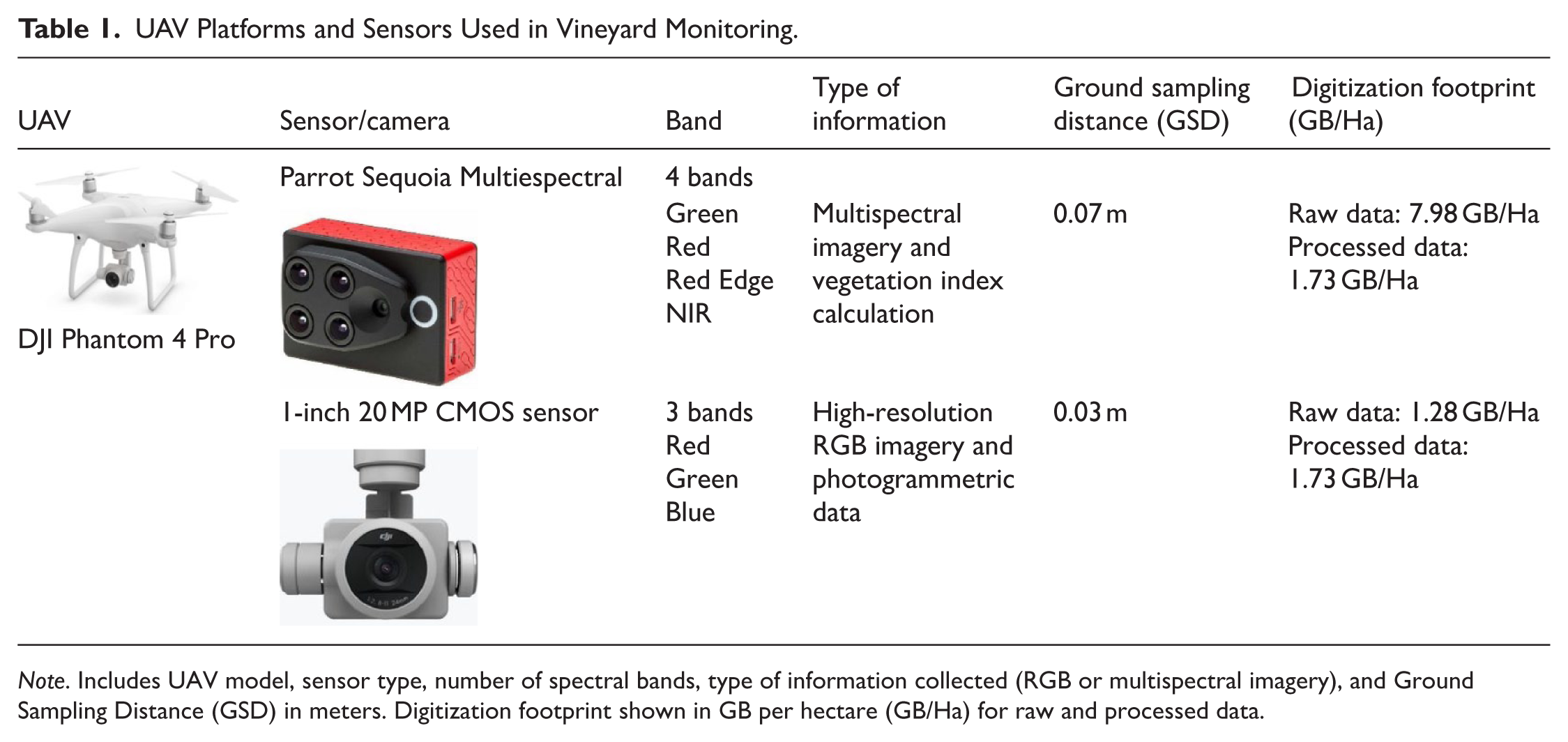 UAV Platforms and Sensors Used in Vineyard Monitoring.