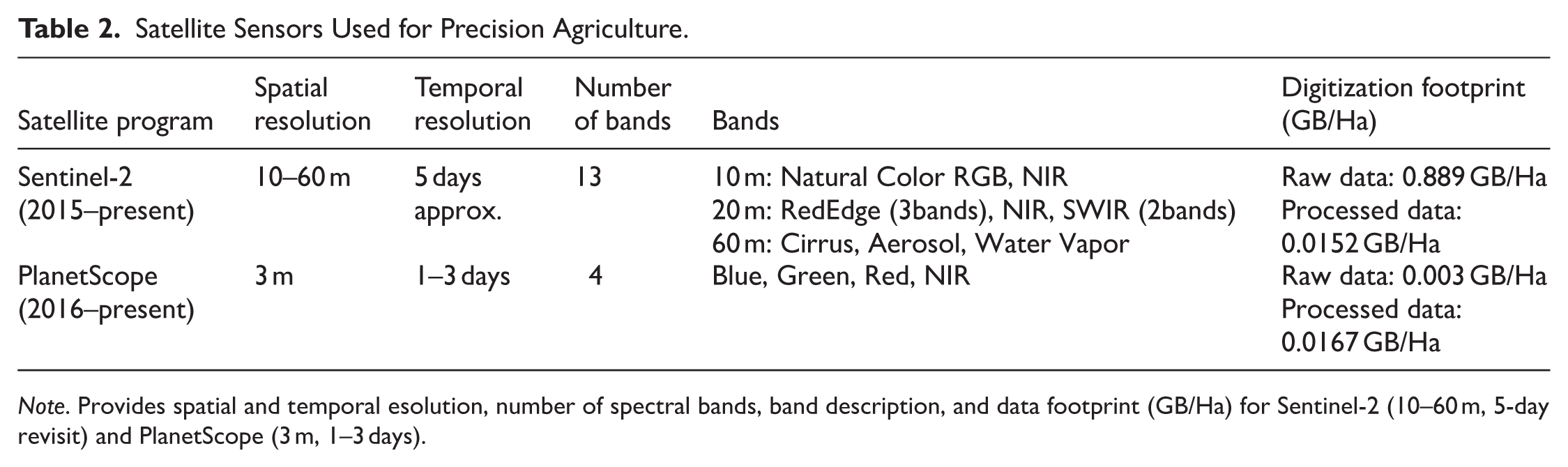 Satellite Sensors Used for Precision Agriculture.