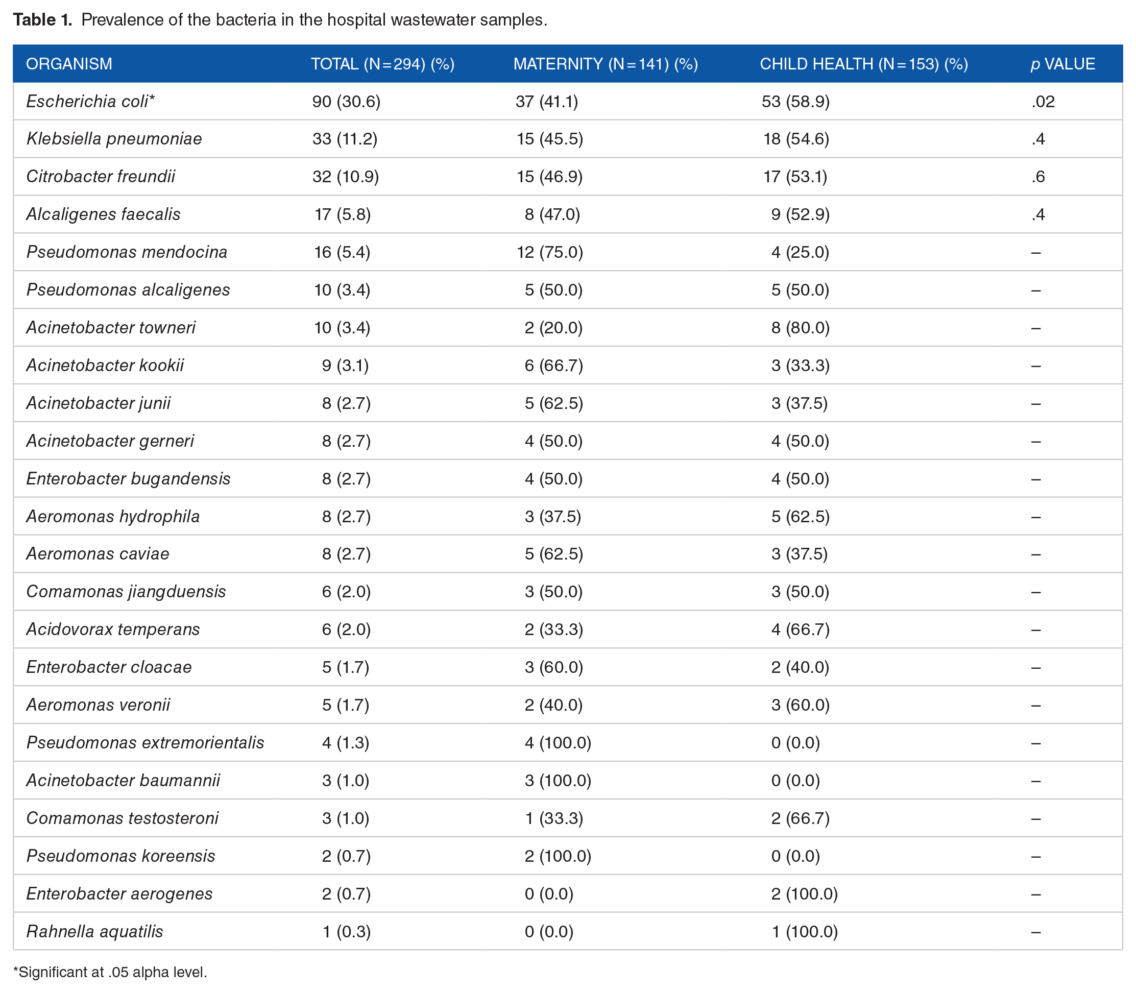The other hospital wastewater-contained organisms that recorded a high prevalence—