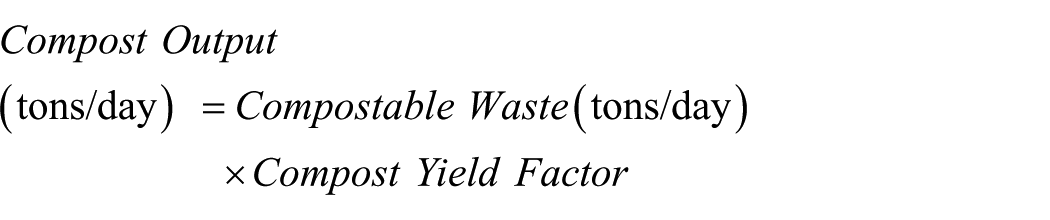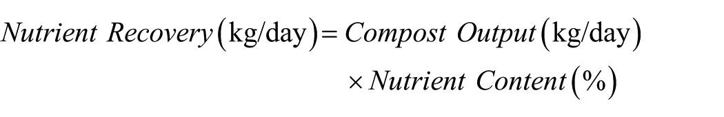 In this study, the potential of the OFMSW for resource recovery was assessed by estimating compost output, daily nutrient recovery (including nitrogen, phosphorus, and potassium), and the energy recovery potential. Compost output is measured in terms of nutrient potential, using a yield factor of 0.50 (50%). 30