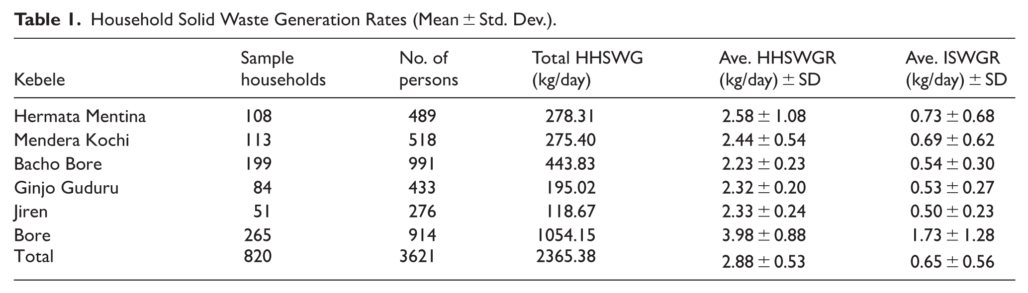 Household Solid Waste Generation Rates (Mean ± Std. Dev.).