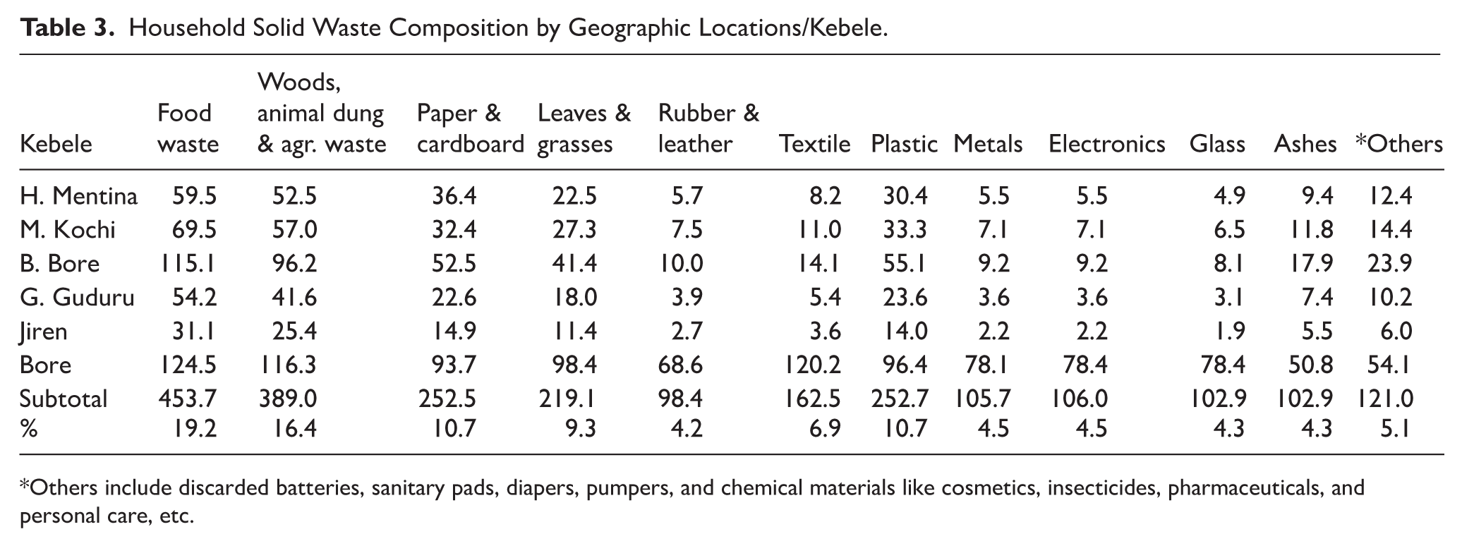 Solid waste samples were also collected during the dry season from the selected households in the 6 kebeles representing diverse socioeconomic and geographic settings.