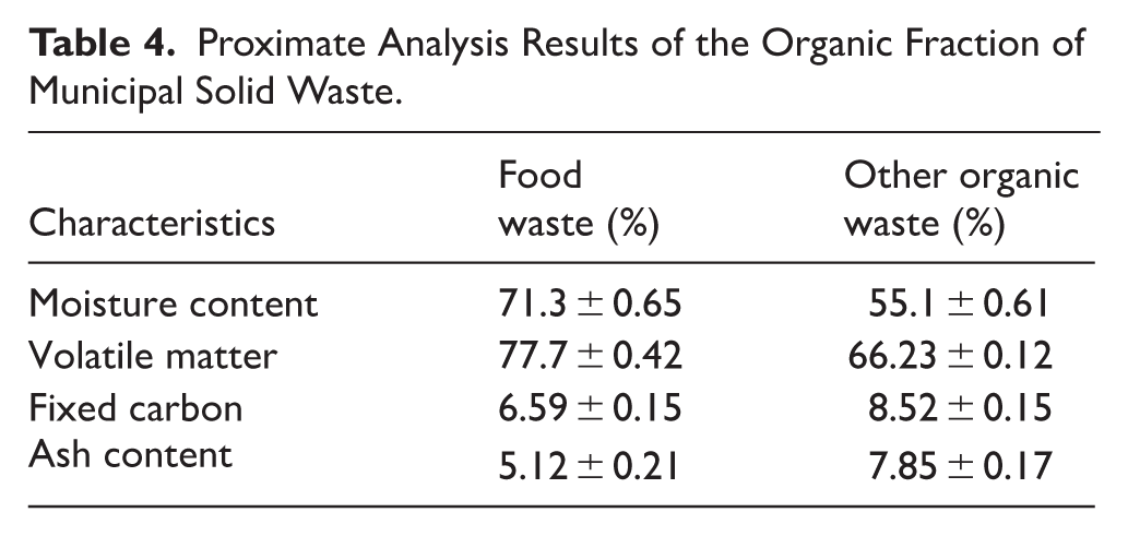 Proximate Analysis Results of the Organic Fraction of Municipal Solid Waste.