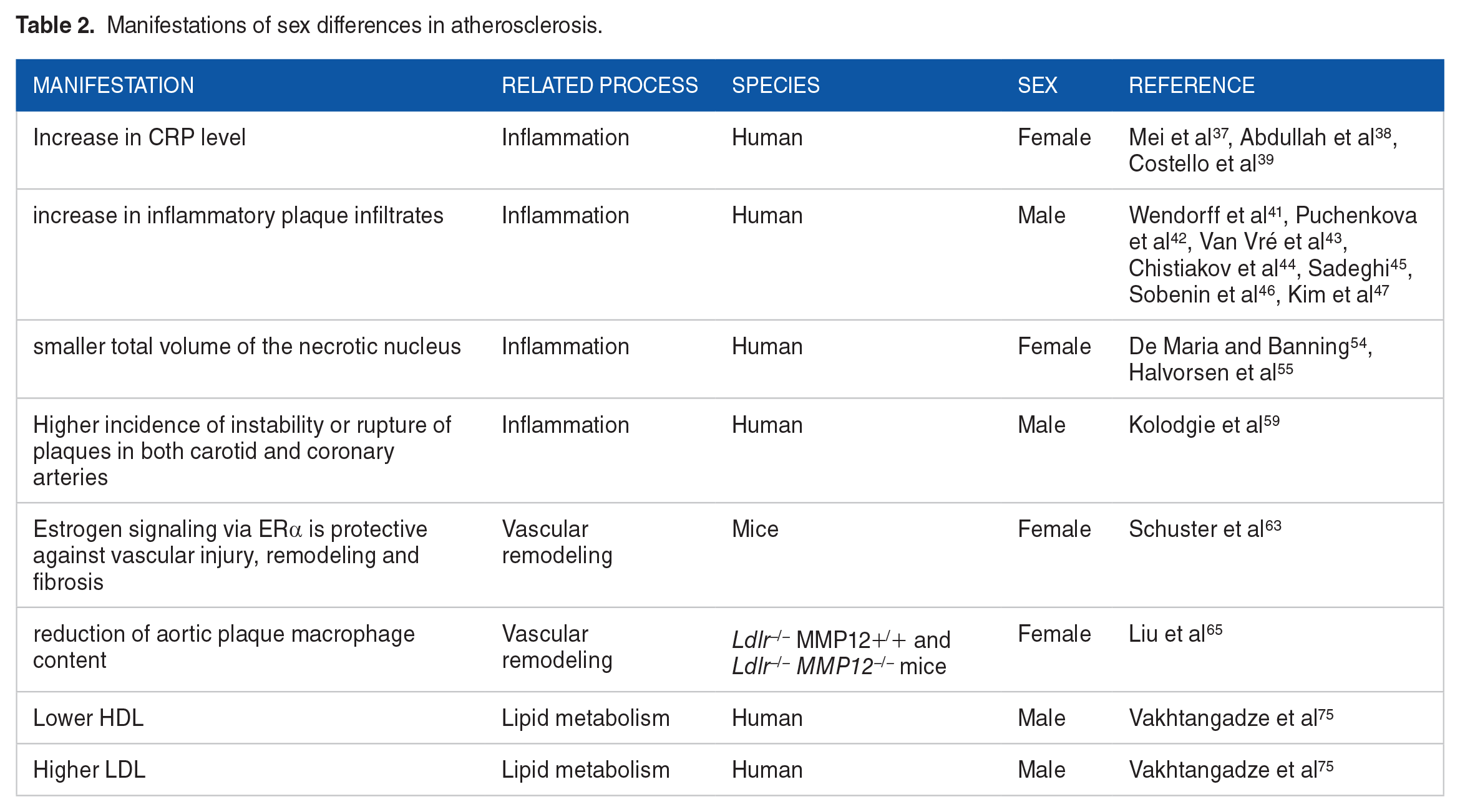 Manifestations of sex differences in atherosclerosis.