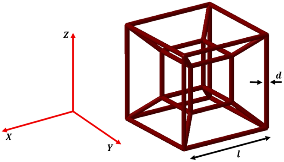 Femoral neck is more prone to damages due to the specific geometry of femur bone in proximal section.66,67 The trabecular bone in the femoral neck region has a higher tissue density compared to other areas of the skeletal system. Additionally, the proximal femur forms the hip joint with the pelvis and is subjected to complex and varying loads. According to Wolff’s law, bone remodels itself in response to mechanical loading; therefore, this region of the femur must exhibit greater and specific mechanical strength compared to other bones in the body. Based on these findings, identifying a unit cell that closely resembles trabecular bone in terms of both density and mechanical stiffness is of great significance. Since the density of trabecular bone in the femoral neck typically ranges between 0.27 and 0.48, the tesseract unit cell, as shown in Figure 8, exhibits the highest density among the intended unit cells and can be considered a potential bone tissue substitute at an appropriate