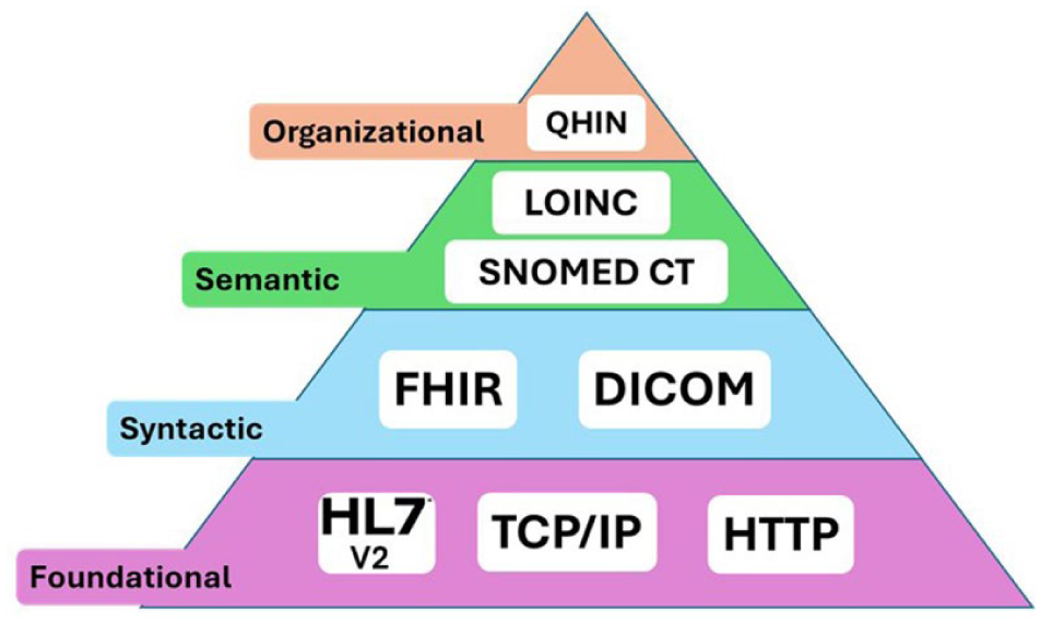 Finally, the fourth level, organizational interoperability, encompasses collaboration at an institutional level, where policies, workflows, and practices are synchronized to enable comprehensive interoperability. This level cultivates a holistic ecosystem that integrates foundational, syntactic, and semantic capabilities with organizational frameworks. Each level serves as a building block, progressively increasing the potential for interoperability by leveraging mediation through standards and technologies, ultimately fostering a cohesive environment for diverse infrastructures. The technical framework known as the Qualified Health Information Network (QHIN), established under the Trusted Exchange Framework and Common Agreement (TEFCA), reflects a paramount effort by many agencies to realize organizational interoperability. 42