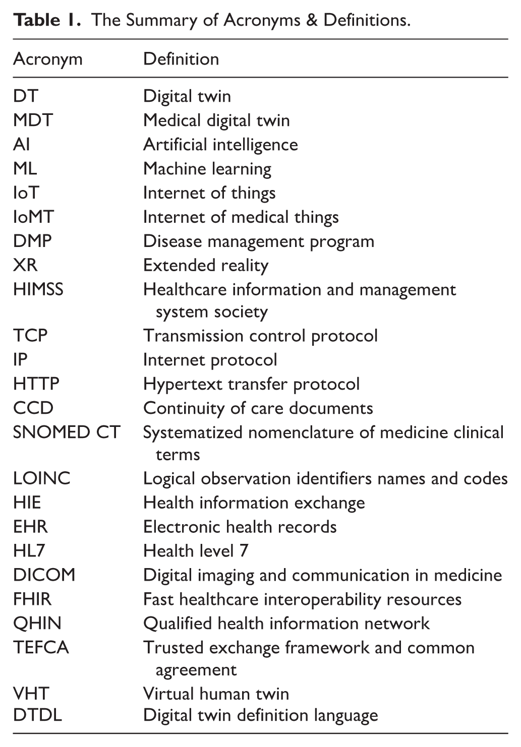 This review provides 3 key contributions. First, it introduces the fundamental concept of healthcare interoperability and its integration with MDT technology. Second, the study identifies the key challenges that hamper smooth interoperability practices using MDT. Finally, the paper highlights potential strategies to overcome these challenges, and highlights the importance of flexible integration approaches that can adapt to the evolving landscape of health technology. For a quick and convenient reference, the acronyms and their definitions are provided in Table 1.
