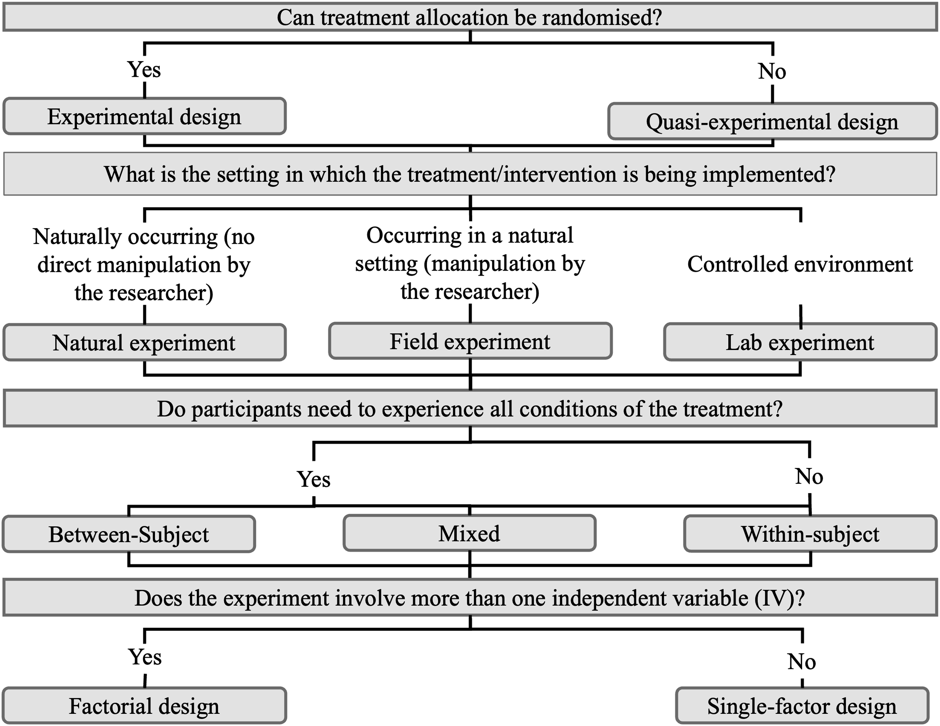 Experiments can also be categorized based on the environment or settings in which they are conducted. Laboratory experiments are conducted in controlled settings designed to isolate variables and minimize external influences (Weimann and Brosig-Koch, 2019). These environments provide researchers with the precision necessary to manipulate independent variables while controlling extraneous variables. Such variables could otherwise influence the dependent variable, thereby confounding the results (Viglia and Dolnicar, 2020). The high level of control in laboratory experiments makes them especially effective for establishing causal relationships and ensuring internal validity (Falk and Heckman, 2009).
