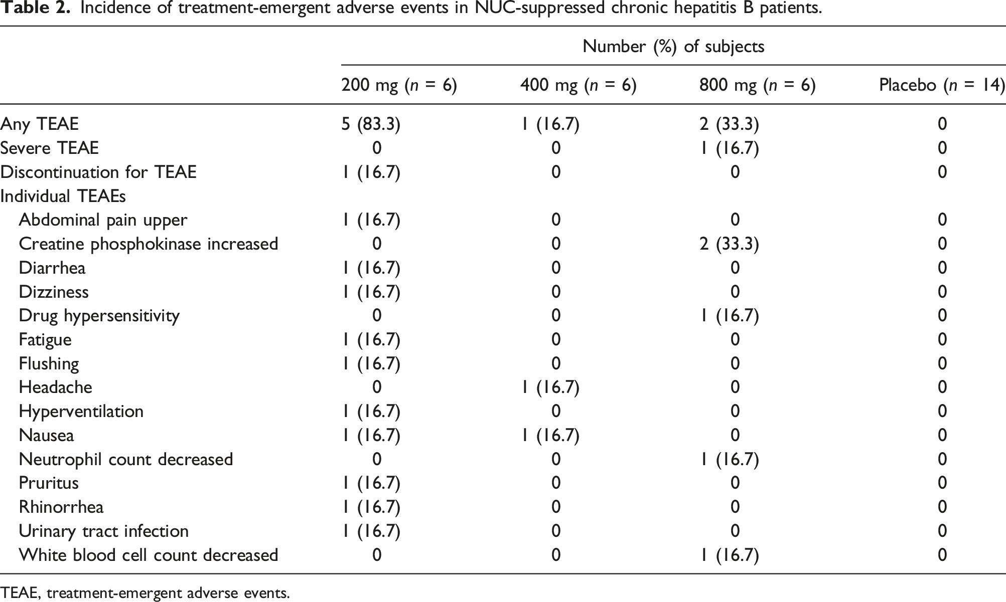 Incidence of treatment-emergent adverse events in NUC-suppressed chronic hepatitis B patients.