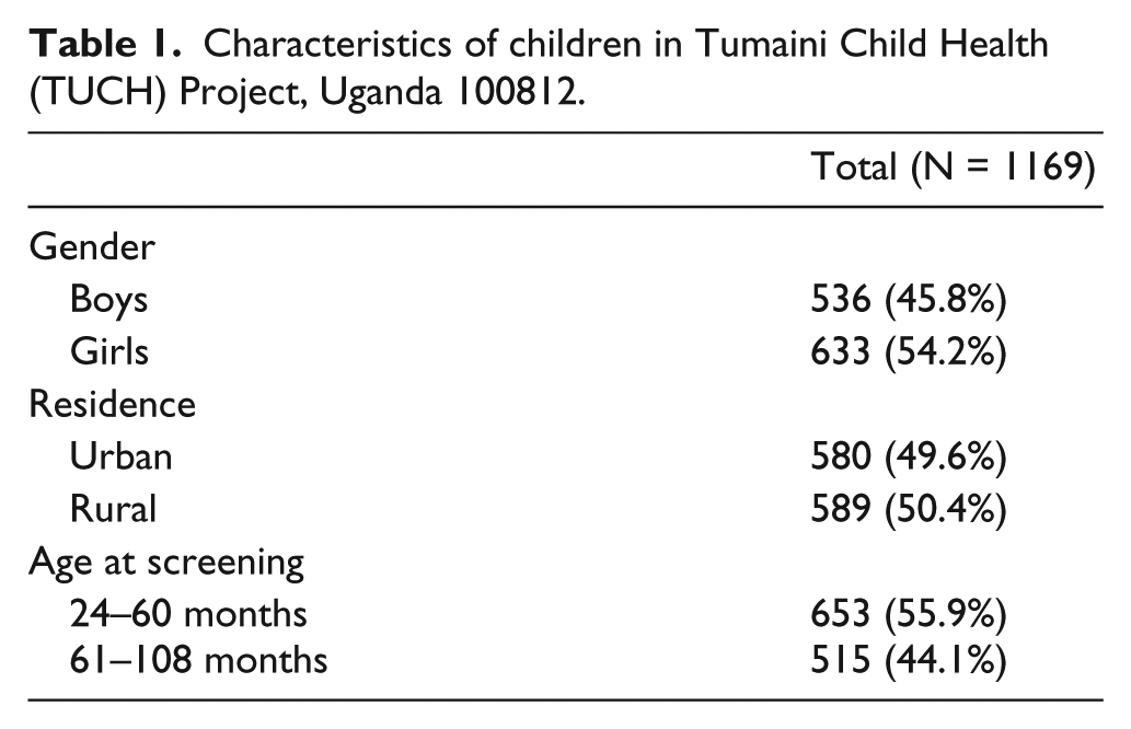 Characteristics of children in Tumaini Child Health (TUCH) Project, Uganda 100812.