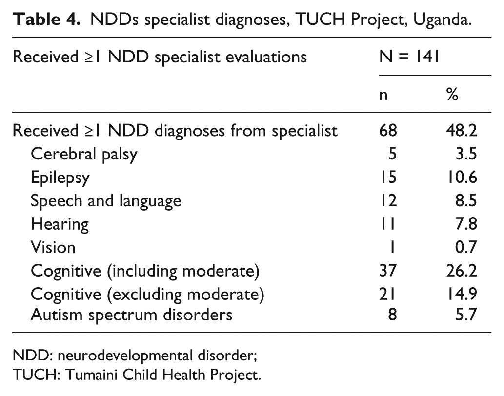NDDs specialist diagnoses, TUCH Project, Uganda.