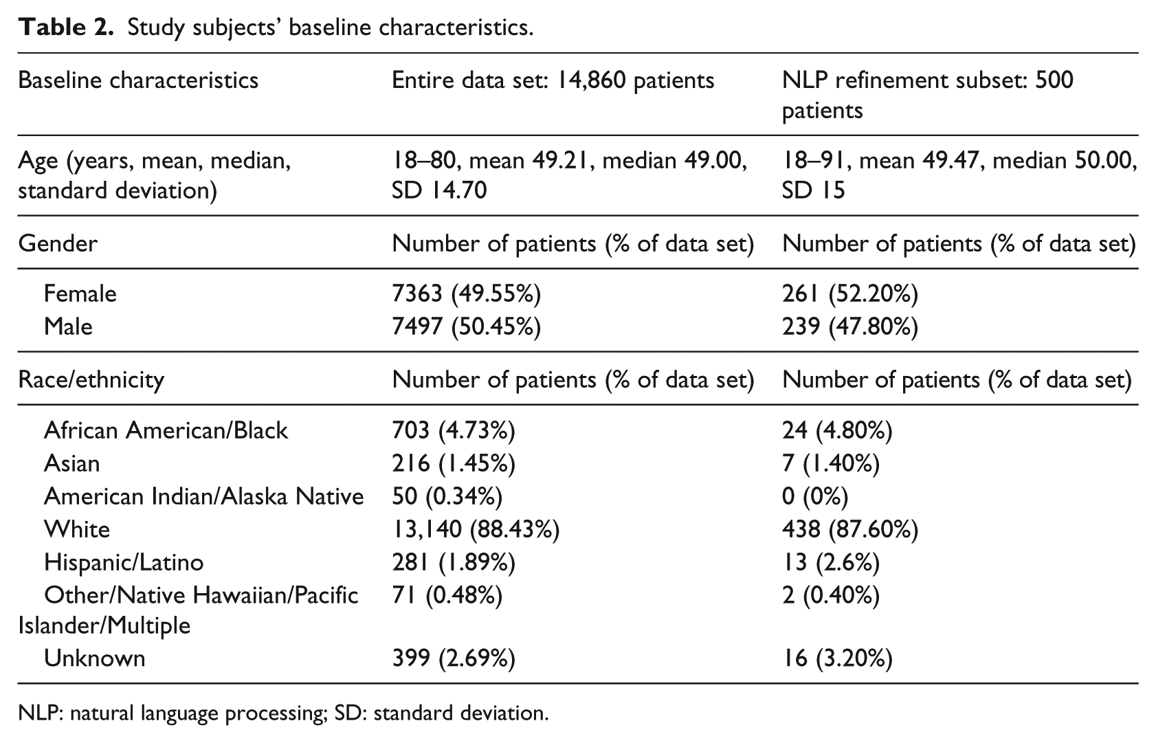 NLP: natural language processing; SD: standard deviation.