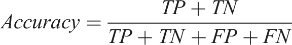 Definition of true positive (TP), true negative (TN), false positive (FP), and false negative (FN).