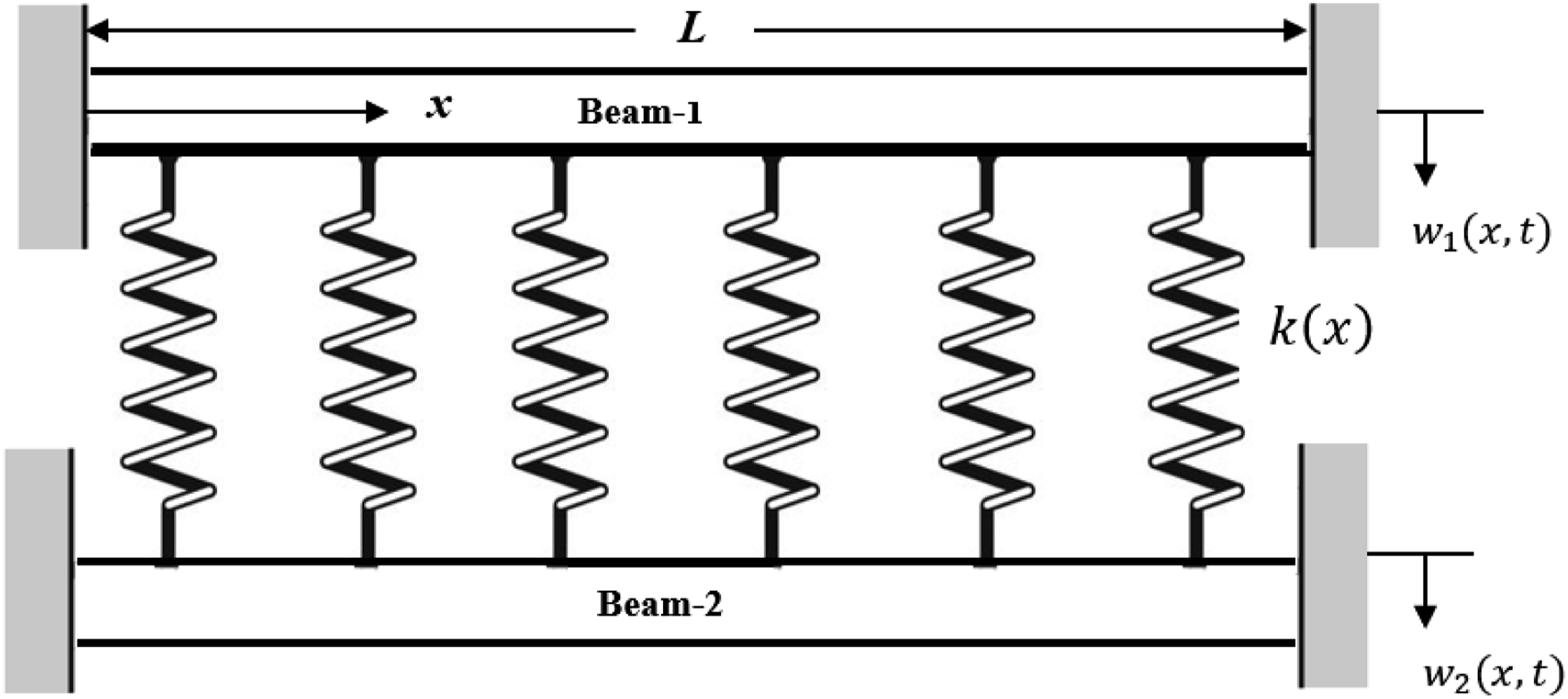 In the present study, the variable stiffness of the elastic layer joining the beams is expressed as