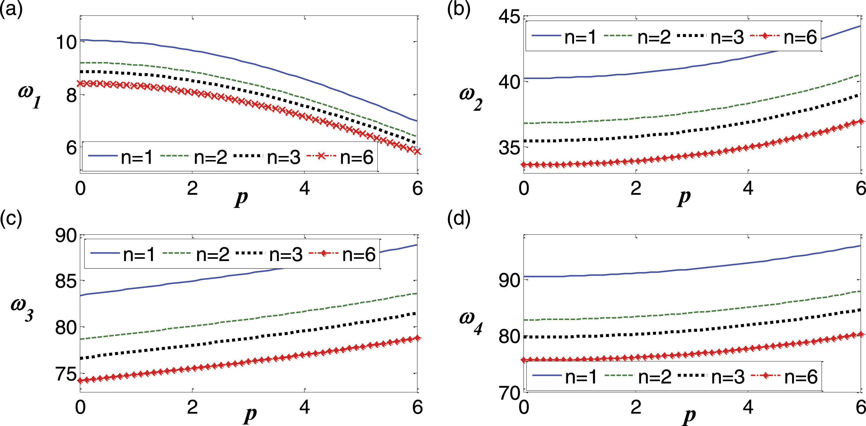The variations of the first four natural frequencies as functions of the axial FG index The variations of the first four natural frequencies of SS-SS DBDFG beams (